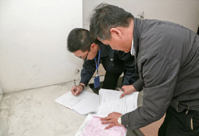 專 檢 持有《重慶裝修裝飾質量檢驗師》證書的質檢人員攜全套檢驗設備進行專項檢查,合格后填寫階段驗收報告,并將現場照片及時上傳至公司系統(tǒng)。