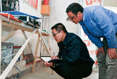• 質檢對工藝項目按驗收標準逐項復查,并通過IPAD上的系統(tǒng)軟件對施工的完成質量進行評分,同步通過網絡上傳給公司項目管理中心備案,并現場拍照存檔。