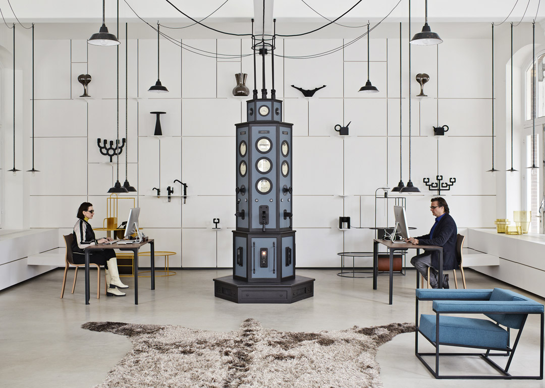 這所新的陳列空間位于其南部城市登博斯,在最近對(duì)外的采訪中,Doris也強(qiáng)說(shuō)現(xiàn)在的室內(nèi)設(shè)計(jì)師們需要更多的才華——除了設(shè)計(jì)之外,需要具備商人的想法,想盡各種辦法吸引消費(fèi)者進(jìn)入店內(nèi),所以有了現(xiàn)在這種新展示方式,讓這間工作室看起來(lái)更像是間卡通化功能性兼具的科學(xué)電器的多寶閣,甚至以至于看起來(lái)像是一部蒸汽朋克的電影場(chǎng)景,設(shè)計(jì)師希望通過(guò)新的陳列方式削弱設(shè)計(jì)師顧客間的隔閡,讓走進(jìn)店面的人感受到職業(yè)化和非正式的,有工作也有自由輕松的玩樂(lè)的氣氛。