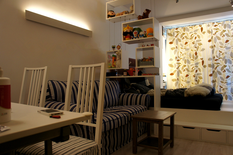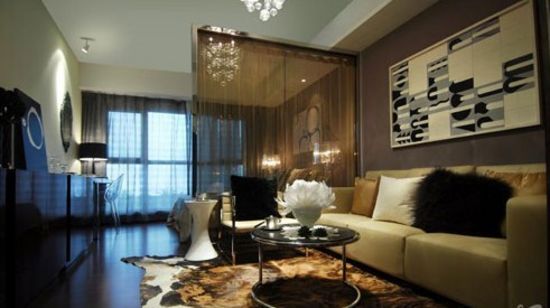 ?選擇質(zhì)地講究,色澤漂亮的布料織物,利用活動(dòng)隔斷形式,如幕帳垂地將室內(nèi)分割成幾個(gè)不同功能的空間。