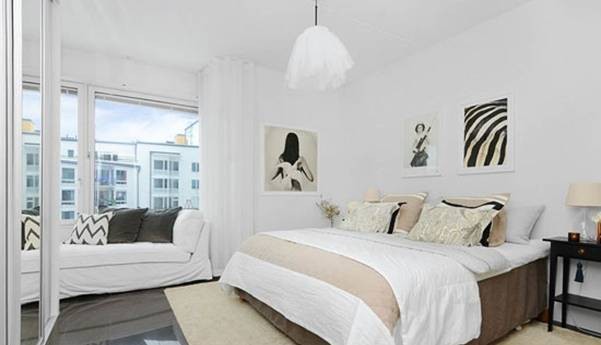 臥室的裝修通常比較簡單,這時候,布藝窗簾在臥室裝飾或者“掩飾”方面的效果往往更加突出。如果房間不夠明亮,可以用布紋具有幾何圖形、布質組織較為稀松的印花布做窗簾,并且窗簾上的圖案和墻飾要盡量統(tǒng)一,這樣能夠讓人的視野更加開闊。此外,具有光澤的反光布、天花板和木材家具等也可以對光線起到補充作用。