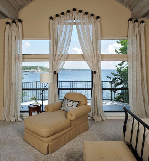 紗質(zhì)窗簾,這類窗簾裝飾性較強(qiáng),還能增強(qiáng)室內(nèi)的縱深感,而且透光性好,這類材質(zhì)的窗簾適合在客廳、陽臺(tái)使用。