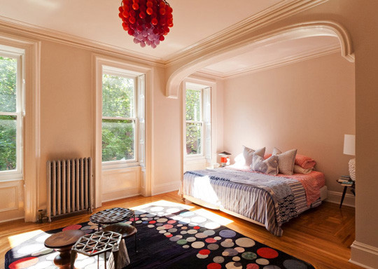 設(shè)計(jì)理念:讓臥室休閑區(qū)兩大空間穿梭自如的拱型過(guò)渡門(mén),保持了空間的寬敞性,又沒(méi)有破壞其整體感,為空間增加線條美,柔化了空間。