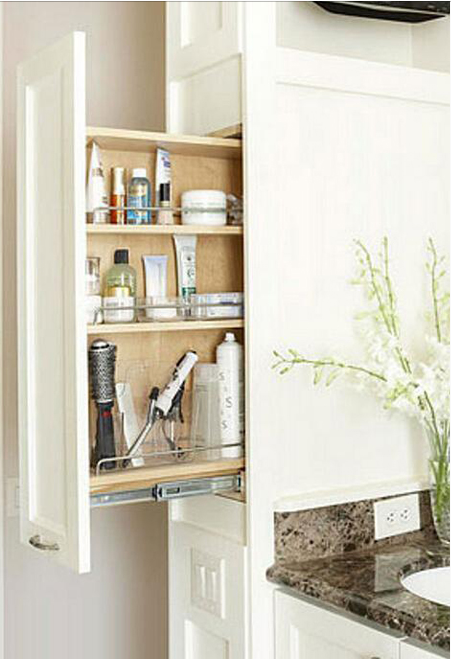 這種柜子最近在室內(nèi)設(shè)計(jì)中很流行,外觀整齊、美觀,但是里面卻暗藏玄機(jī),分層擺放上各種洗漱用品,輕輕拉開(kāi)抽屜,就可以拿取,多簡(jiǎn)單!