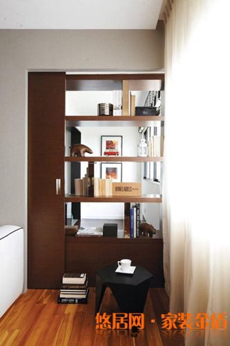 一個(gè)鏤空形的書架,不僅僅是隔斷墻體,也是一個(gè)雙面收納架,既可以當(dāng)做書房的書本收納架,也能當(dāng)做陽臺(tái)小茶室的雜物架。