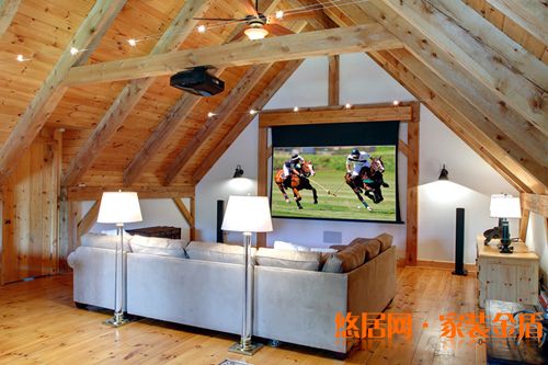 木質(zhì)吊頂也是閣樓裝修設(shè)計(jì)搭配的一個(gè)亮點(diǎn)。顯得清新自然,低矮的空間,作為音影區(qū),讓人放松,也很有安全感。