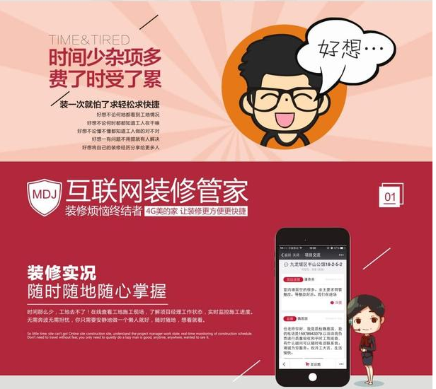 美的家裝修4G服務(wù)系統(tǒng)將依托于手機(jī)微信系統(tǒng),以簡單方便的操作方式全方位提升裝修業(yè)主在裝修過程中的保障與感受,極大的方便了沒有時(shí)間對裝修項(xiàng)目監(jiān)管的裝修業(yè)主,再也不需要裝修業(yè)主親自往返于裝修工地,足不出戶就能享受美的家裝飾公司各個(gè)部門對工地的實(shí)時(shí)匯報(bào)。