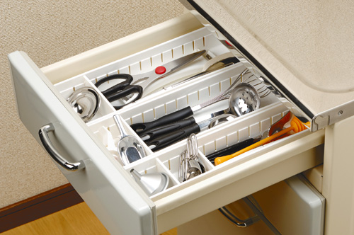 2、每個(gè)小抽屜都有“大肚量”,廚房中最多的柜子和抽屜,所以抽屜的空間自然是要好好利用。抽屜收納,最關(guān)鍵的是要有序排放。如果想讓抽屜有序收納,大家可以購(gòu)買抽屜分割器,這在許多家居店里都可以買到,在部分五金商店也可以購(gòu)買。你也可以購(gòu)買一些價(jià)格比較低的餐具盤,上面一般都劃分好了放刀、叉、勺子的地方。抽屜收納最需要晉級(jí)的就是,不要把抽屜當(dāng)做廢品收購(gòu)站,把任何不需要的東西都往抽屜里扔,那樣基本就是廚房雜亂的開端。