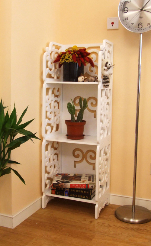 4、加一個(gè)拐角置物架,拐角置物架在《愛情公寓》中曾經(jīng)出現(xiàn)過,放置在電視柜旁邊,可以放置電視遙控器、影碟、充電器、綠植等。這種置物架不用特地選擇與裝修風(fēng)格一致,一個(gè)幾十塊錢的簡(jiǎn)單的藤制置物架就可以了,非常百搭,也不會(huì)突兀。
