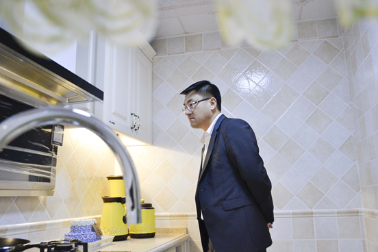 《徐方強先生正在仔細觀看樣板間細節(jié)》