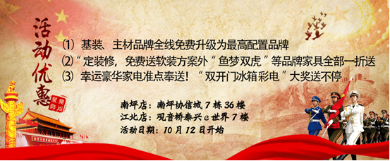 金秋十月秋風(fēng)送爽,值此佳節(jié)時分樂尚卻為廣大重慶裝修的業(yè)主送上“最激動人心的裝修大禮”。樂尚裝飾自5月份在江北觀音橋成立最大整裝旗艦店以來,獲得廣大業(yè)主的一致好評。不僅讓業(yè)主體驗到絕無僅有的整裝服務(wù),更把實惠真正帶給咱們老百姓。如今十月份樂尚更舉辦盛大“品牌閱兵”活動。萬千業(yè)主共同見證,整裝大企再展雄風(fēng)。
