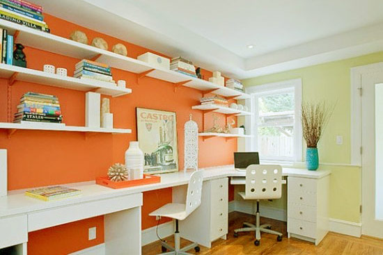 廚房和用餐區(qū)的色調(diào)適宜用暖色調(diào)。如紅色和橙色,鮮艷的顏色可以刺激大腦,使唾液分泌旺盛,促進食欲,暖色調(diào)通過光線的反射也能讓食物看起來更加誘人,這也是為什么多數(shù)快餐店要用紅色、橙色做主色調(diào)的原因。