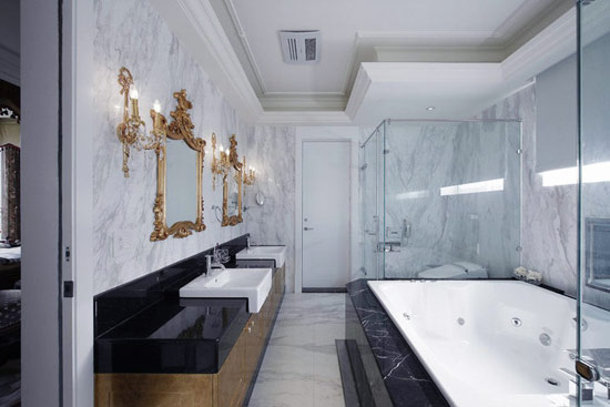 衛(wèi)浴空間的用色不拘一格,但是冷色調(diào)效果更佳。冷色調(diào)在視覺上有收縮的效果,可以讓空間看上去更大,對于狹小的衛(wèi)浴空間來說是最好的擴容方法。
