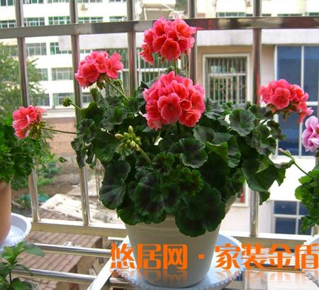 天竺葵花團(tuán)錦簇,豐滿成球,南北各地都能適應(yīng).高溫時節(jié),擺放室外疏蔭環(huán)境;寒冷時節(jié),在明亮室內(nèi)觀賞.天竺葵具有一種特有的氣味,這種氣味使蚊蠅聞味而逃.