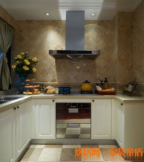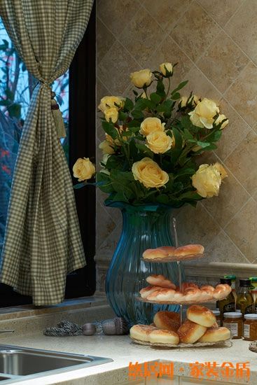 在廚房采用的是冷暖的色彩搭配,墻面與地板圖案的深淺變化,法蘭西的浪漫是不是讓你有一種想要成為美食高手的夢(mèng)想呢?廚房也可以很浪漫。