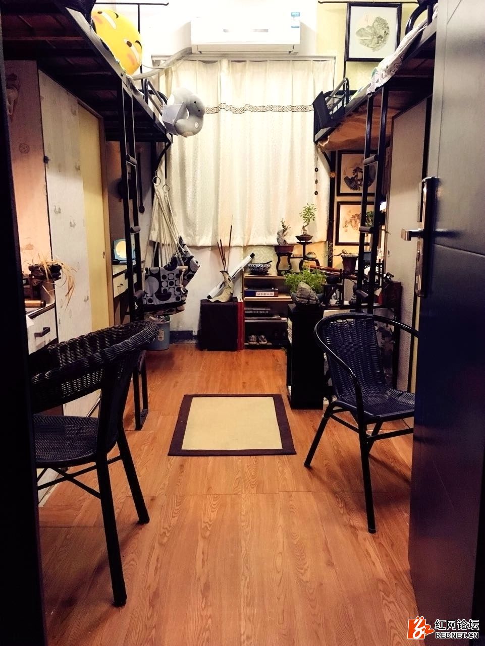當然大學宿舍裝修中,男生也厲害,早就火了網(wǎng)絡(luò)的中南大學一件宿舍,4個男生一共花800塊打造出了的古色古香的“最美中國風”。