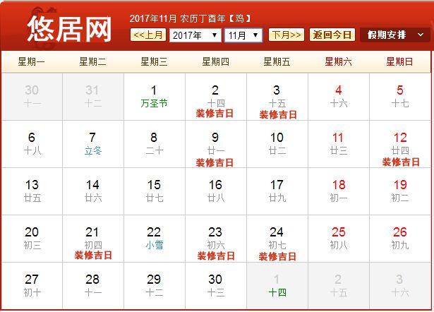 導(dǎo)讀:裝修選擇吉日,2018年11月的吉日有哪些呢?