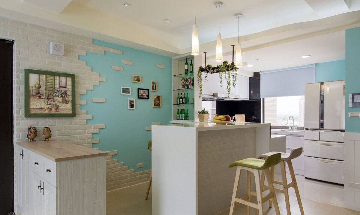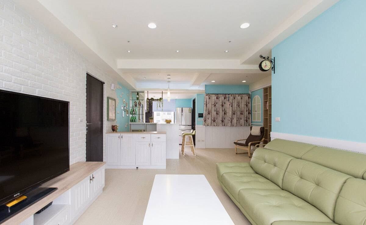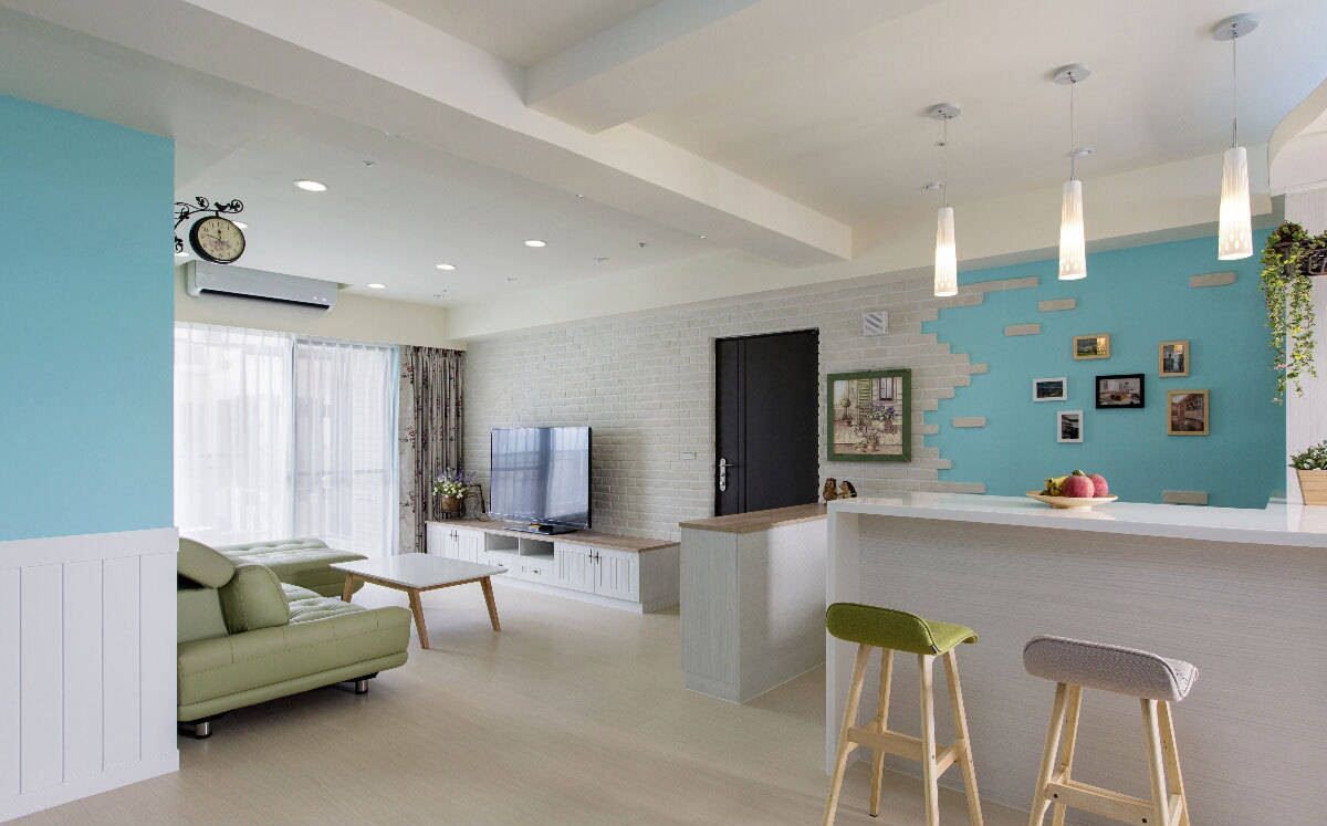 利用屋主喜愛的藍與白色為空間主色,營造出如地中海的海灣休閑感。