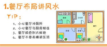 餐廳風水從裝修開始已經(jīng)需要注意,餐廳的位置、餐廳與各空間的關(guān)系、餐廳的顏色等都關(guān)系著整個餐廳的風水,下面看看哪些餐廳裝修是不能有的。
