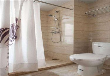 ▲衛(wèi)生間淋浴用簾子替代玻璃隔斷