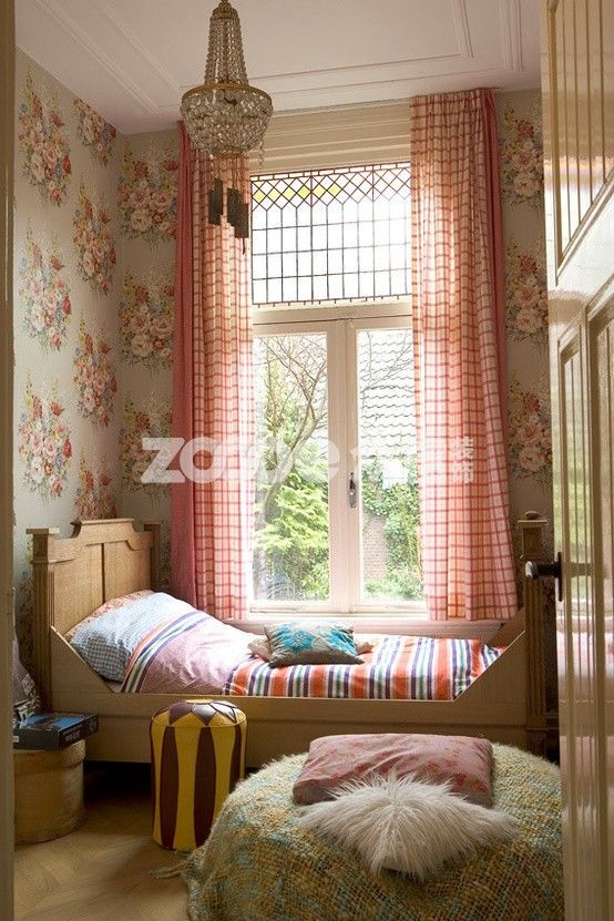 粉紅格紋窗簾、泛舊精致的壁紙,這樣帶有復(fù)古格調(diào)的窗邊,誰(shuí)都會(huì)忍不住駐足,小小的窗臺(tái),簡(jiǎn)簡(jiǎn)單單得用幾只抱枕輕輕堆放,滿(mǎn)足了角落的舒適。一旁放上幾本好書(shū),添置一盆最?lèi)?ài)的花,窗邊角落即刻變身為閱讀角,而最有韻味的無(wú)疑是開(kāi)到一半的窗簾了,半遮半掩間,散發(fā)出淡淡的浪漫氣息。