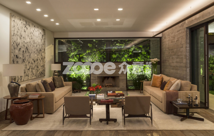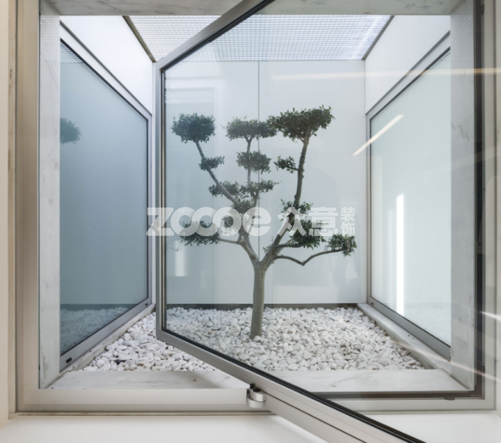 大片落地窗的觀景窗臺(tái),專(zhuān)門(mén)在窗外做了綠植覆蓋,令人似乎走進(jìn)了神秘的森林一般。