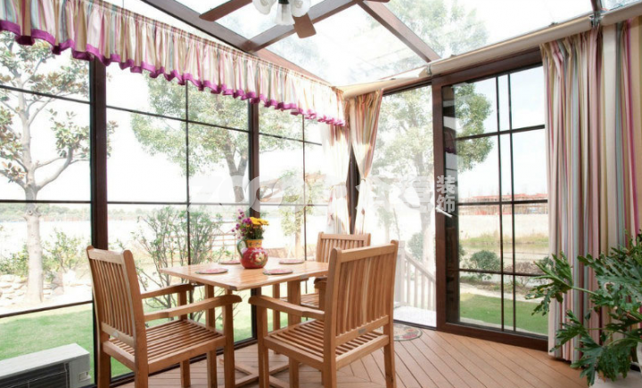 大面積的使用玻璃,既有充足的光線又?jǐn)U大了空間感。不用再為到底封不封陽(yáng)臺(tái)而爭(zhēng)執(zhí)的不可開(kāi)交,調(diào)和了家庭所有成員的口味,還能臨時(shí)充當(dāng)會(huì)客室和餐廳的角色呢!通透的空間也給人一種無(wú)線延伸的心理感受。