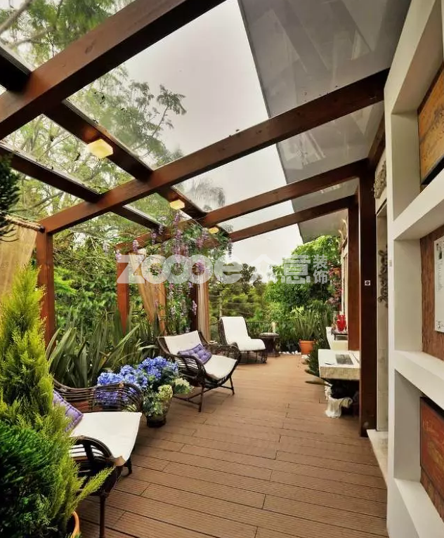 像不像進(jìn)入了原始森林?郁郁蔥蔥的樹(shù)木花草,遮天蔽日的綠色似乎能滌蕩人的靈魂!有序的擺放舒適的白色藤椅,植物的原始美搭配設(shè)計(jì)現(xiàn)代感的藤椅,讓你的陽(yáng)臺(tái)變成了一個(gè)綠洲,像是坐在叢林里。