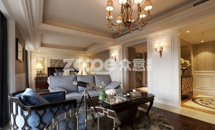 采用典型的歐美古典室內(nèi)設(shè)計,多半有半圓形拱門造型。在家具配置上,以不同款式的沙發(fā)及各類單椅相互搭配組合,莊重而不失活潑。如果家具是古董黑或棕紅色的,既可以與家中原有的家具搭配,也可與其它歐美風(fēng)格的家具組合,能體現(xiàn)出古典、休閑的效果,增添幾分高雅的品位。