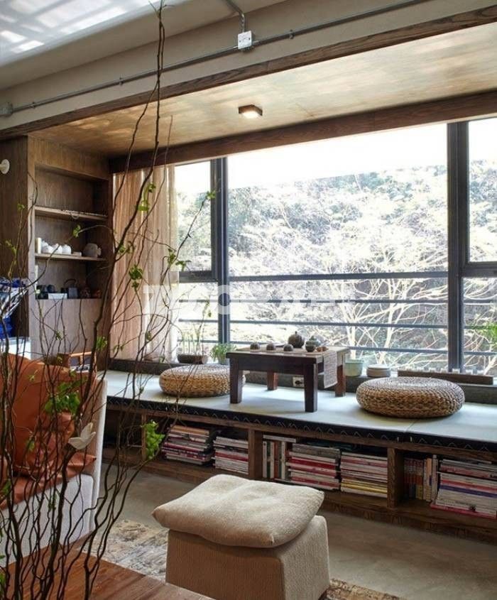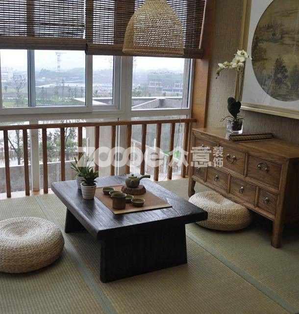 飄窗總是獨(dú)得大自然的恩賜,有陽(yáng)光與微風(fēng)相伴。不用單獨(dú)再做地臺(tái),在這樣的一個(gè)位置,放置一張草席,兩三個(gè)蒲團(tuán),一個(gè)茶幾,就是一個(gè)榻榻米。