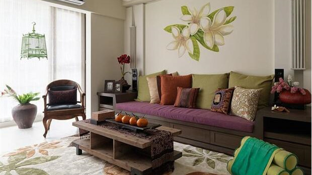 東南亞風(fēng)格裝修多以磚紅、草綠、紫色等暖色調(diào)為主,用在秋季,即使外面已經(jīng)落葉枯黃,屋里還是悠閑溫暖,格外具有生機。