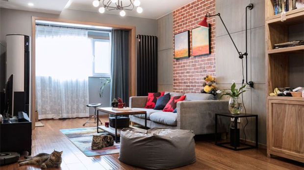 裸露的墻磚、原木色的地板家具,帶來工業(yè)風(fēng)的力量感,讓人在室內(nèi)忍不住運動起來,制造出溫暖的感覺。