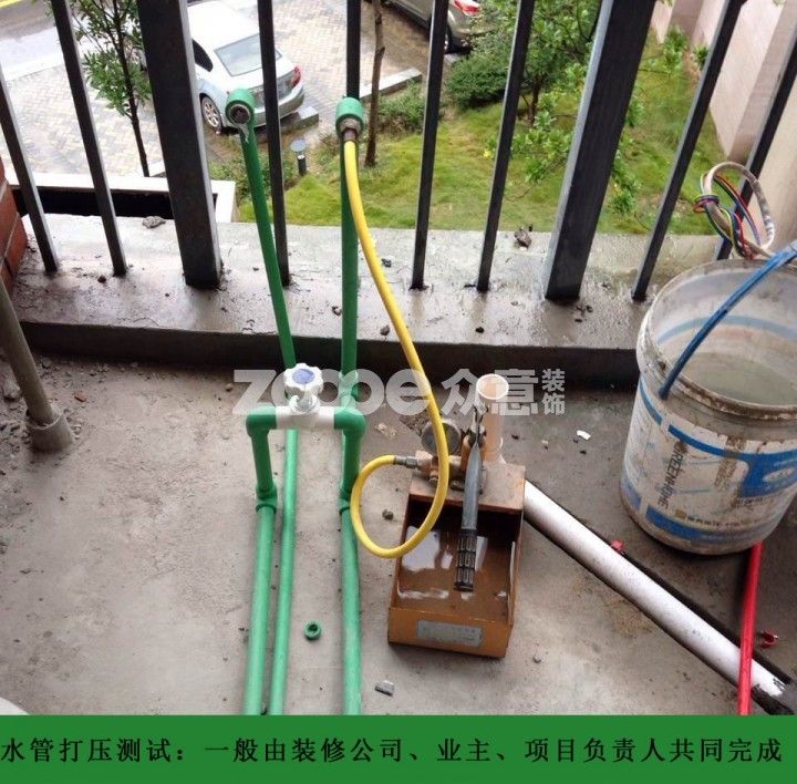 水路改造做完以后,一定要做水管的打壓測試,這是保證后期水管管路連接可靠性的常用方法。打壓測試一般由裝修公司、業(yè)主和項(xiàng)目負(fù)責(zé)人共同完成,具體的操作可以參考如下: