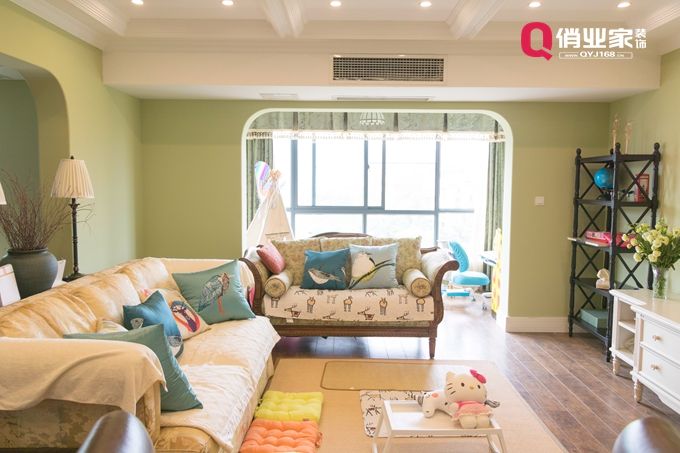 客廳設(shè)計就是一場設(shè)計元素的碰撞,新綠墻漆碰撞美式硬裝,效果清新帶點小美情懷,讓整個客廳顯得格外的華麗、高雅。