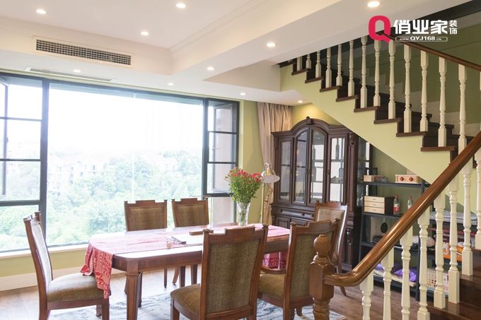 餐廳裝修,設(shè)計師選擇保留超大落地窗,同時,軟裝盡可能簡單,來突出現(xiàn)代美式風(fēng)格視野寬敞的優(yōu)點。