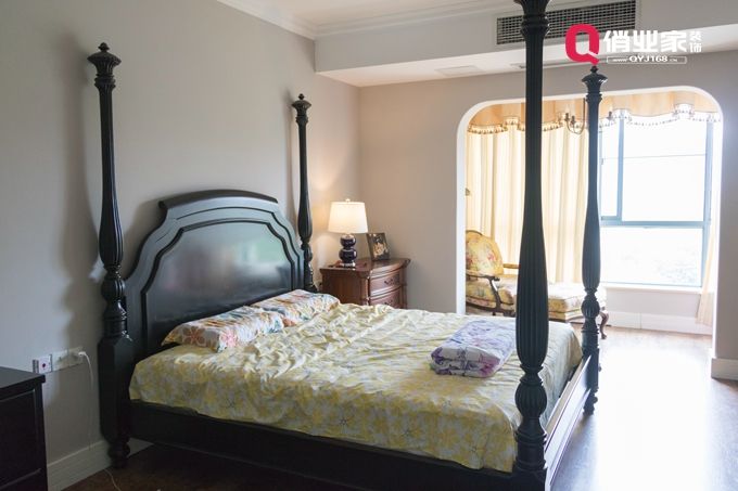 臥室裝修明快的色彩,簡潔的裝飾,充滿美式文化氣息的家具陳列襯托出一種有質(zhì)感的裝修效果。