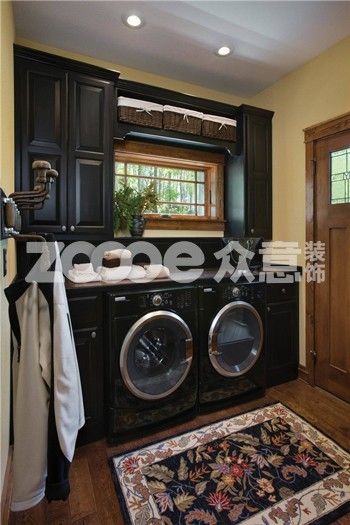 除了實(shí)用外,想不到洗衣房也能成為代表你品味的一角。美式家居風(fēng)格搭配黑色的洗衣房,非???黑色的組合柜幾乎將洗衣機(jī)隱形了,搭配花色的地毯提亮整個(gè)空間,小空間運(yùn)用全黑色也不會(huì)那么壓抑了!