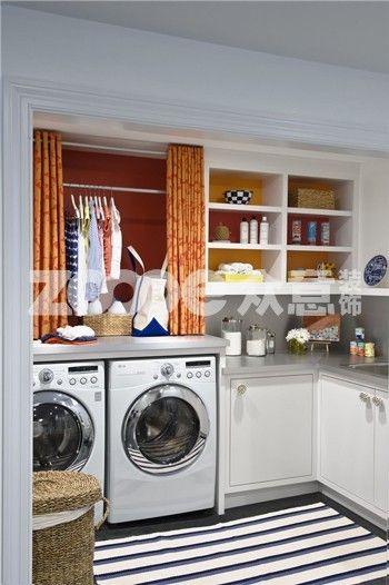 你家洗衣機(jī)一般放在哪?相信大多數(shù)的朋友會(huì)說衛(wèi)生間啊、陽臺(tái)啊。雖然這樣節(jié)省了洗衣房所占的空間,但是衛(wèi)生間環(huán)境潮濕不利于機(jī)器的保養(yǎng)以及維護(hù);而陽臺(tái)陽光大,特別是夏天比較容易曬壞洗衣機(jī)的外殼。今天小編就教你一個(gè)洗衣房的設(shè)計(jì),不需要多大空間,給我一面墻就夠了!