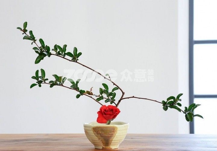 一個碗狀的米色陶瓷花盆,一根枝丫,一朵紅花,如果把它們作為熱戀小情侶或者新婚燕爾的房間插花裝飾,也可以為生活增添不少情調(diào)。
