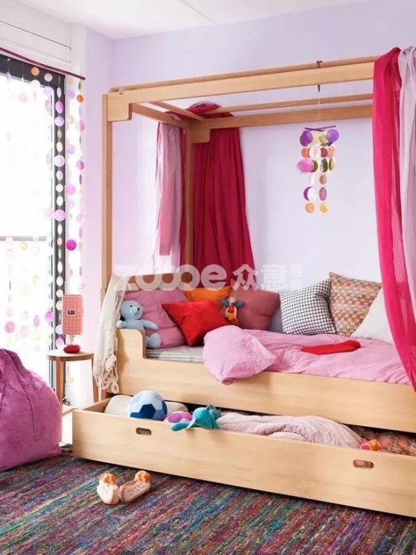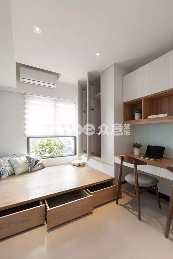 你家的床底都放了什么?因為容易落灰,恐怕大家的床下面只放了各種紙盒和行李箱。把床設(shè)計成地臺床就不用擔(dān)心落灰啦,這樣孩子的玩具、衣服等也有了放的地方。