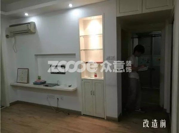 改造后,設(shè)計(jì)師對(duì)整體的墻面進(jìn)行了換色,縮短了原先的電視柜隔板,移動(dòng)了掛機(jī)的位子。刷新了家具器和地板。