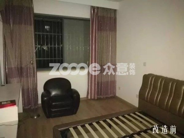 改造前的臥室,厚重的皮沙發(fā),泛黃的墻面以及昏暗的燈光照明。