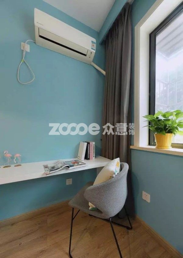 臥室一側(cè),充分利用小空間,做一個(gè)隱私的小書房,無(wú)事的時(shí)候可坐在這里看書發(fā)呆,十分美好。