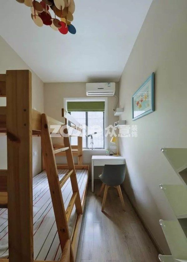 改造后的兒童房,整體格局沒(méi)有太大的變化,墻面重新進(jìn)行了刷漆,選用了米色墻漆,整體空間溫柔。