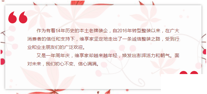 12月10日,維享家裝飾迎來(lái)14周年慶的第一波活動(dòng)落地,維享家具有超高性?xún)r(jià)比的透明整裝服務(wù),和誠(chéng)意滿(mǎn)滿(mǎn)的周年慶活動(dòng)特惠,吸引了眾多消費(fèi)者來(lái)到現(xiàn)場(chǎng),熱情的掌聲和歡呼聲將現(xiàn)場(chǎng)喜慶氣氛推向一個(gè)又一個(gè)高潮。