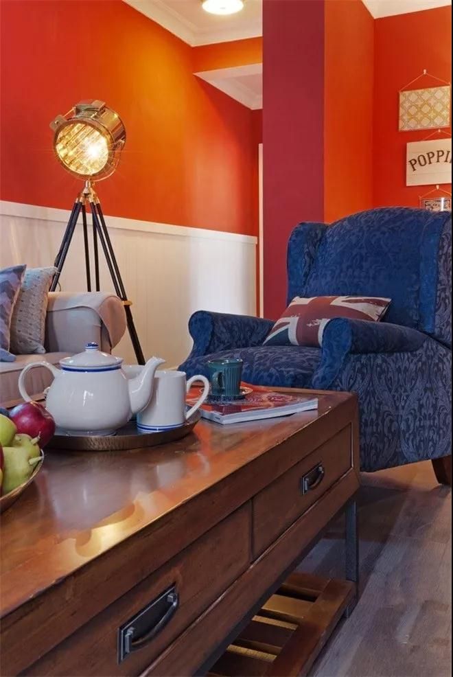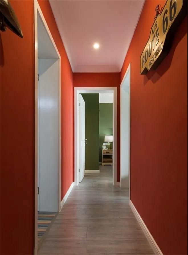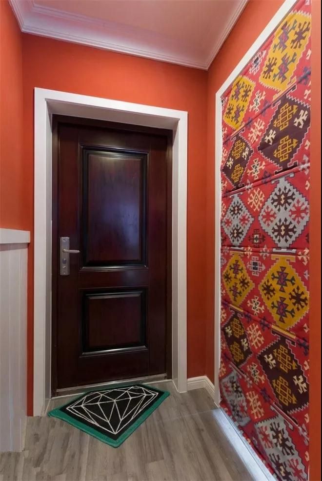 ▲玄關(guān)的墻面與客廳同為橘紅色,一進(jìn)門就能看到立面復(fù)古花紋裝飾門簾,烘托出房間的熱鬧與華麗。