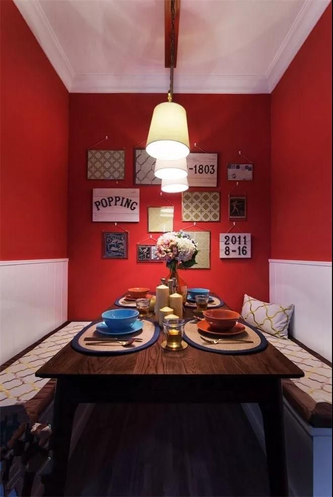▲餐廳的設(shè)計是我最喜歡的樣式,雖然只有一個小小的空間,卻分外溫馨,設(shè)計得也很巧妙,以卡座代替餐桌,即節(jié)省空間,又不會突兀。