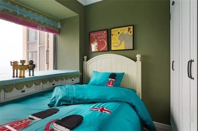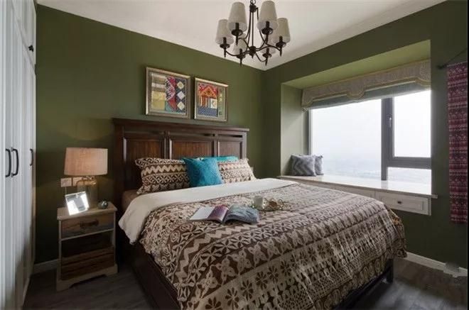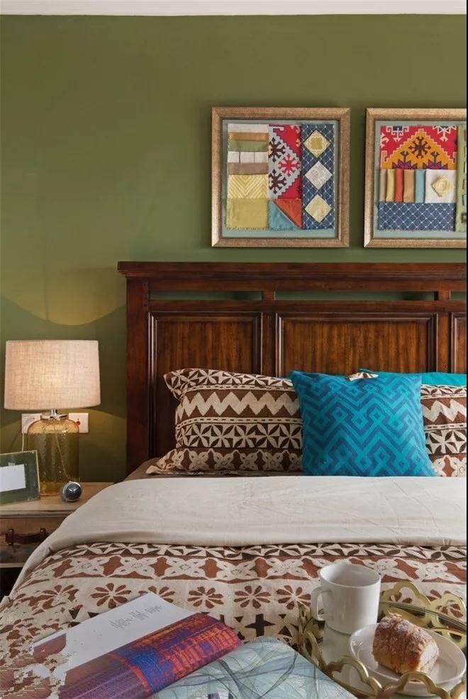 ▲臥室的設(shè)計,沒有了客廳的熱烈,以偏暖的橄欖綠讓整個空間柔和下來。