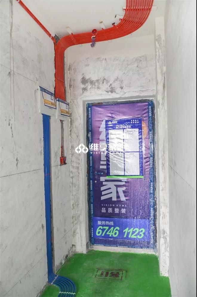 水電安裝已基本完成,全景可看出整個(gè)房間的線路走向。