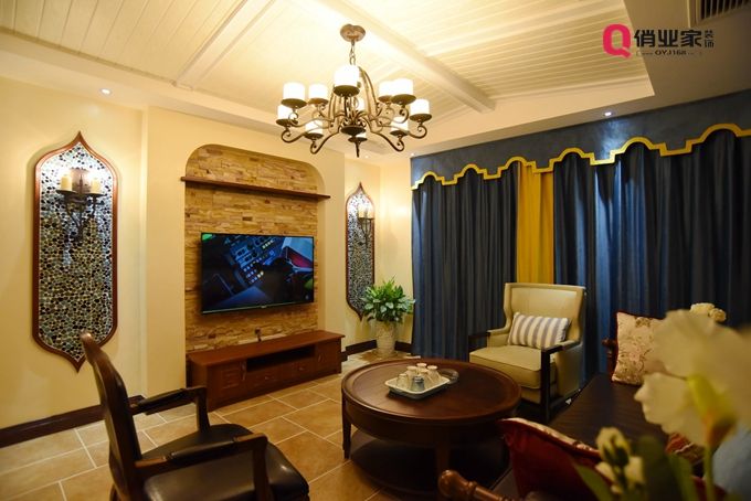 第四種,地中海裝修風(fēng)格的背景墻:電視背景墻采用傳統(tǒng)復(fù)古式文化石與乳黃色乳膠漆,實(shí)木線條包圍馬賽克面包磚,外加壁燈,細(xì)看別有一番韻味。